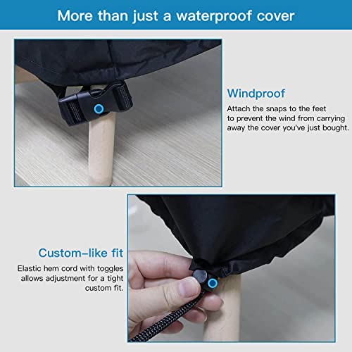 - Windproof and custom-like fit: bottom click-close straps secure the cover on windy days. Drawstrings help the furniture cover fit better.