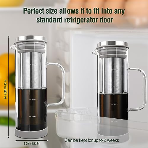 - 3.Elaborate design: A sleek and stylish appearance that complements any kitchen decor. To enhance your brewing experience, we provide a cup brush and coffee scoop with clip. Additionally, its perfect size allows it to fit into any standard refrigerator door, ensuring optimal storage conditions for your delicious cold brew.