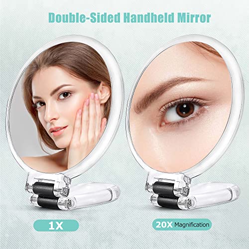 B Beauty Planet 20X Magnifying Handheld Mirror,Travel Folding Hand Held Mirror,Double Sided Pedestal Makeup Mirror with 1/20X Magnification,Clear