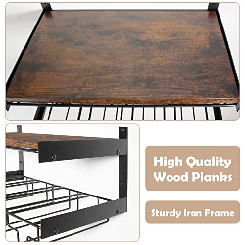 - Sturdy and Stable: This lovely wall wine holder is made of solid wood planks and a sturdy iron frame. Thanks to high-strength welding technology, it can store your wine and wine glasses safely and stably.