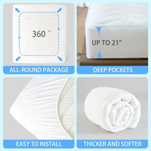 - Deep pockets to avoid displacement-The deep pocket design can extend up to 21 inches deep, allowing for 360 degree coverage of the mattress, avoiding displacement and keeping the mattress flat