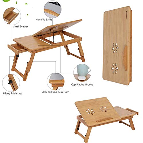 - Design with drawer - The notebook stand has a small push-pull drawer to store items, and the groove can be used to place cups. A baffle prevent laptop slipping.Flower-shaped ventilation holes on the surface can dissipate heat in time.