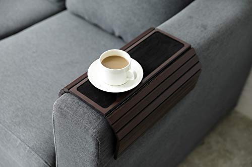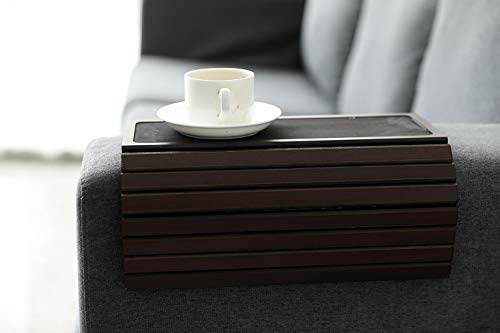 - Versatile: Foldable couch arm table fits over all square and rounded armrests on all sofas, armchairs and couches. Couch tray will protect your sofa and provide an easy-to-reach holder for your drinks, remote control, snacks and phone etc. And this bamboo sofa arm table also will add a fresh natural flair to your dorm room, living room, sunroom, and more.