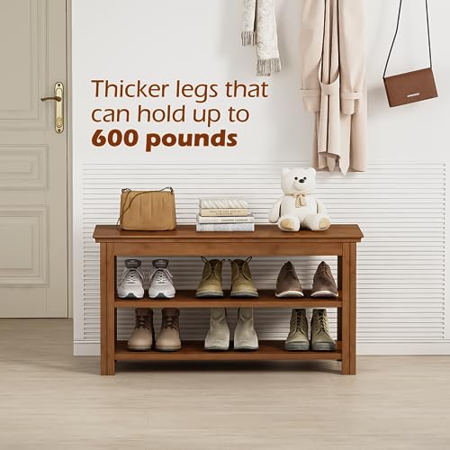 - 【Environmentally Friendly Bamboo】This bamboo shoe bench is made of high-quality hard bamboo wood. Bamboo wood is easy to clean and strong with exceptional durability. The smooth design of this wooden bench suit any home decor style.