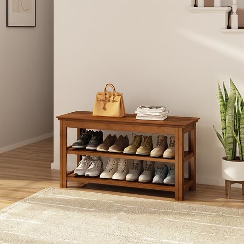 - 【Space Saving Shoe Rack Bench】The entryway shoe bench with storage is a practical combines the shoe rack and bamboo bench to help save more space. With 31.5" length ,11.2" width and 16.5" height, use this small shoe bench for entryway to organize shoes or bags.
