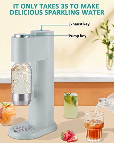 - [Simple Operation]Press the pumping key, once every 1 second, repeat for 3-4 seconds to make a cup of delicious sparkling water, you can also increase the pump times according to your desired taste, after completion, press the exhaust key, remove the water bottle clockwise.