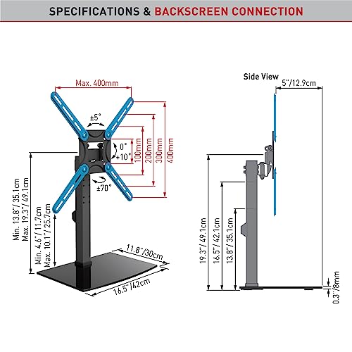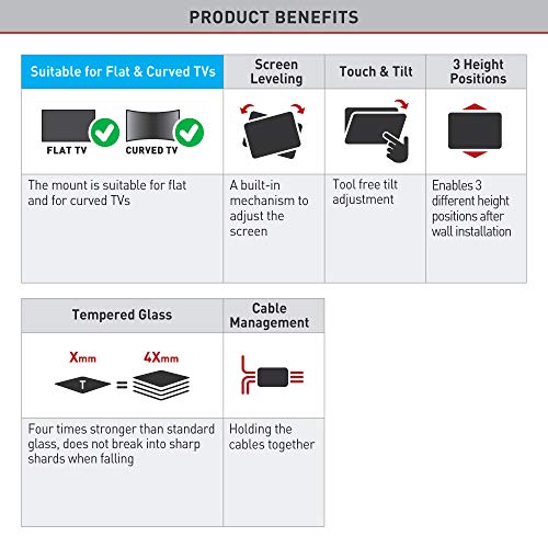 - ► REPLACE TV LEGS - Elegant tabletop stand with a black tempered glass base, 4 times stronger than regular glass. A perfect solution when looking for an ungrade from the design and functionality of standard TV legs, or when they are lost.