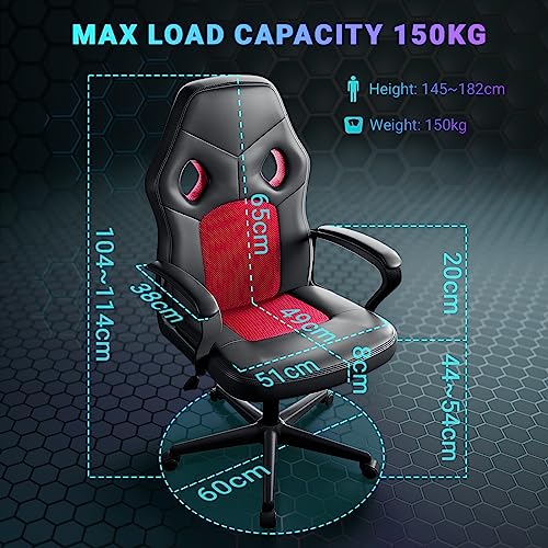 - 【3 adjustment functions】This gaming desk chair has a 10 cm seat lift to accommodate people between 145 cm and 182 cm in height. The rocking function of the backrest allows you to rest in spare time. 360° rotation is convenient for you to quickly change position and move around on a flat surface.