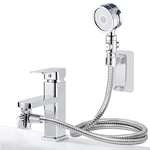 - Hand shower for wash basin, with 1.5 m hose, Instruction manual included, works with most faucets(Please check the size of the faucet before purchasing).