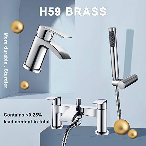 [Basin Tap + Bath Shower Tap] Hapilife Bathroom Set Waterfall Chrome Sink Mixer Tap and Bath Filler Tub Mixer Tap with Shower Head