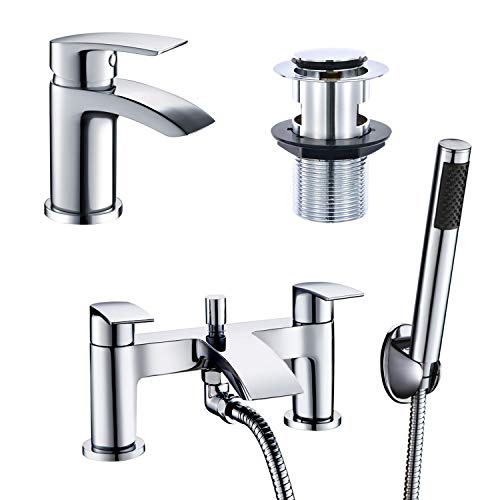 Home DIY & Tools [Basin Tap + Bath Shower Tap] Hapilife Bathroom Set Waterfall Chrome Sink Mixer Tap and Bath Filler Tub Mixer Tap with Shower Head