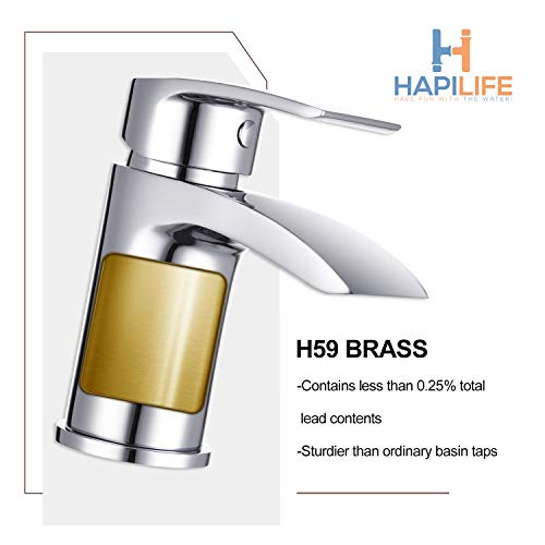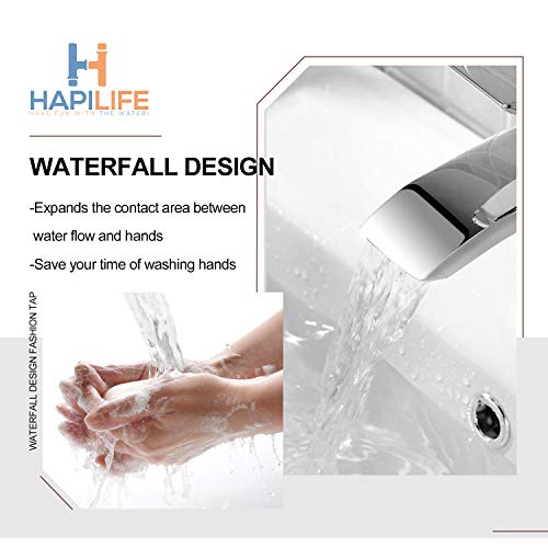 From the manufacturer Have Fun with the Water! ----- Hapilife Hapilife offers a series of thoughtful designed bathroom and kitchen taps, shower heads, bathroom sinks and accessories for residential and commercial applications. Humanized design combined with quality you can see and feel in bathrooms and kitchens from Hapilife. We are trying to help you to build your happy life, and hope you will enjoy it with your family. Waterfall Design The design inspiration of this tap comes from waterfall in nature. One day, our professional product designer went hiking with his friends. They passed by a marvelous waterfall. They were surprised by the magical power of nature. What the commonality between waterfall and basin taps is water. So this waterfall basin tap was created after our designer coming back. SmartSpecialDynamic MirrorLook Technology MirrorLook Technology, is highly reflective for a mirror-like look and keep it lifelong bright. BrightEasy to clean Ceramic Cartridge The cartridge is made of good ceramic which lets you open or stop water flow conveniently. It can endure more than 300,000 million switch tests. SmoothNo Leak H59 Brass It is made of the best brass materials (H59 brass), contains <0.25% lead content in total. HealthierSturdierMore durable Product Measurement Overall Height: 115mmSpout Height: 60mmSpout Reach: 90mmThe Hoses Length: 400mm Will It Work in My Bathroom? For this tap to operate, your water system will need to produce at least 0.5 bar pressure, and we recommend 1 bar for optimal performance.This can be achieved if you have any one of the following systems: Combination boiler systems Gravity fed systems (only with a pump) Megaflow system Pumped hot water systems Package Contents 1 x basin mixer tap 1 x instruction manual 2 x fitting hose Fitting kits