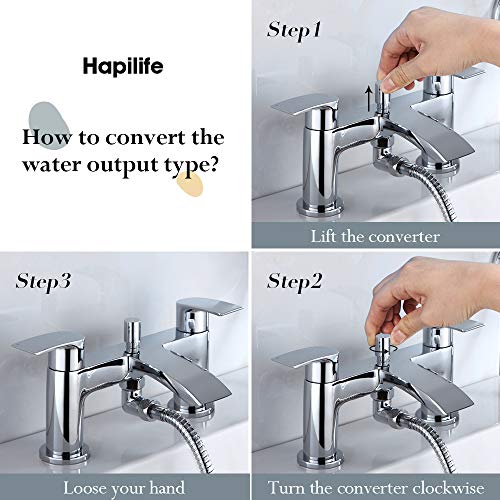Product Description 1/4 TURN BRASS CARTRIDGE The cartridge is made of adavanced brass and other good materials which makes you open or stop water flow conveniently. The mono bath filler faucet with dual lever can endure more than 300,000 million switch tests. SmoothAvoid Leaking WALL-MOUNT AND HANDHELD SHOWER While enjoying your cozy bath time, you can also take a shower comfortably. Besides, it is convenient to take a shower for your pets. The adequate and soft water will not harm the delicate skin of babies. ConvenientMulti-purpose STUNNING LOOKING The upgrated multilayer polished chrome construction resists fingerprints and water spots which makes the modern bathroom shower tap look modern and timeless. Multi-layer chrome finish is highly reflective for a mirror-like look and keep it lifelong bright. ContemporaryGlossy MORE DETAILS ABOUT THE BATHTUB FILLER TAP WITH HANDHELD SHOWER Material Lead-free Copper Finish/Colour Chrome/Silver Shape Round Mounting Type Deck-mount Spout Style Waterfall & Flat Distance of Centers of 2 Holes 180mm Overall Height 125mm Spout Height 70mm Spout Reach 120mm Water Pressure 1-10bar