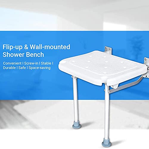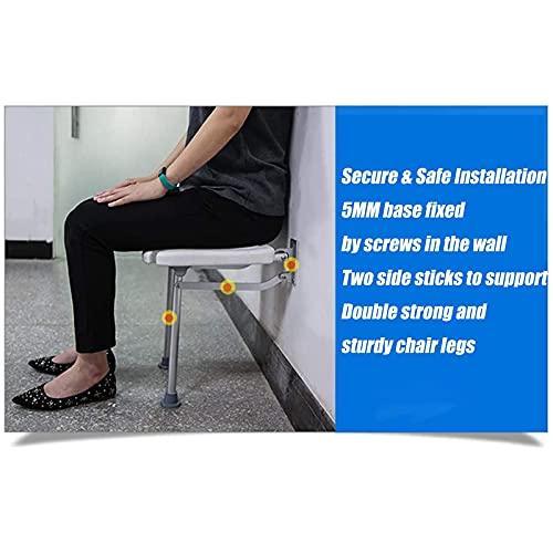 Bath Stools,Bathroom Shower Stool Wall Mounted Folding Bathing Seat Foldable Shower Chair Elderly Bath Aid Benches with Support Leg Aluminum Fram