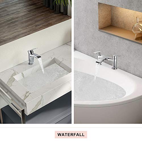 Home DIY & Tools [Bath Tap & Bathroom Sink Tap] Hapilife Basin Mixer Monobloc Tap Waterfall and Bath Filler Tub Tap Chrome