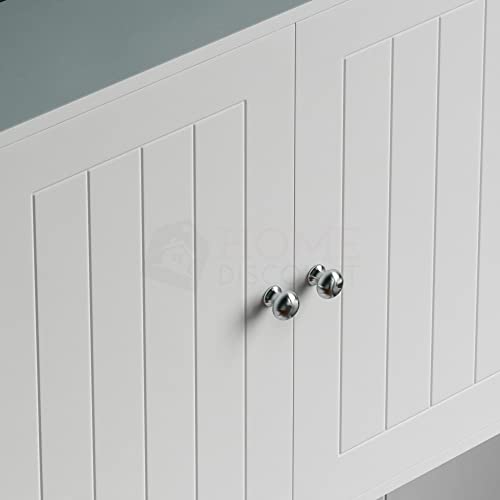 • The cabinet features two doors with smooth groove handles that open to reveal two inner shelves. This gives you plenty of storage space for all your bathroom essentials, from towels and toiletries to cleaning supplies and more.