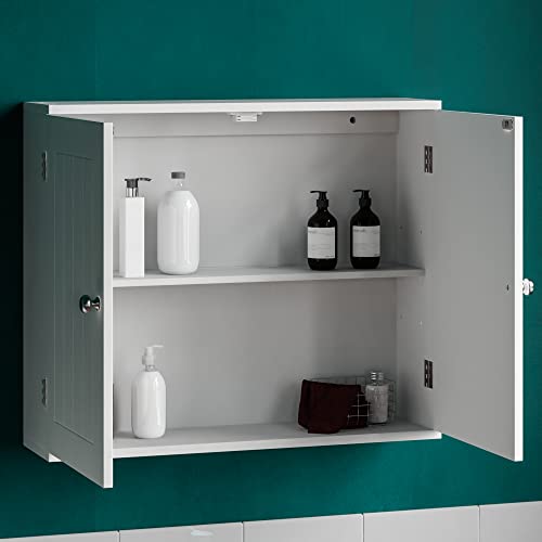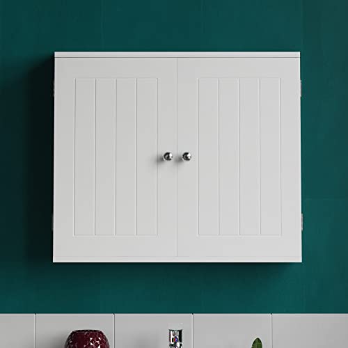 Home Bathroom Furniture Bath Vida Priano Bathroom Cabinet Double Door Wall Mounted Storage Shelf, White