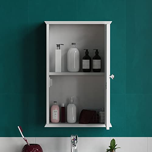 - The 1 Door Mirrored Wall Cabinet includes an inner shelf, providing ample storage space for your toiletries, cosmetics, and other bathroom necessities. This shelf helps you keep your items neatly organized and easily accessible.
