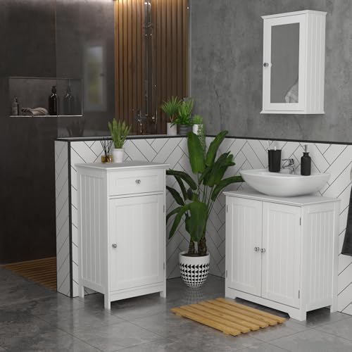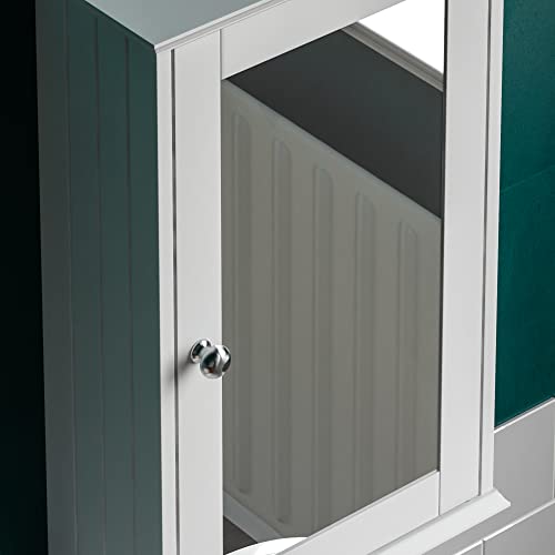 - The cabinet's door is equipped with a mirror, allowing you to easily check your appearance while accessing your bathroom essentials. This convenient feature eliminates the need for a separate mirror and enhances the functionality of the cabinet.