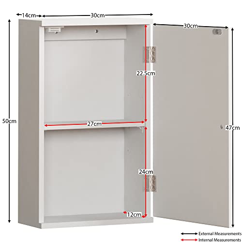 - Measuring approximately H 50 x W 30 x D 14 Cm, this cabinet is the perfect size for small to medium-sized bathrooms. It's compact enough to fit into smaller spaces yet provides enough storage space to help you keep your bathroom organized and tidy.