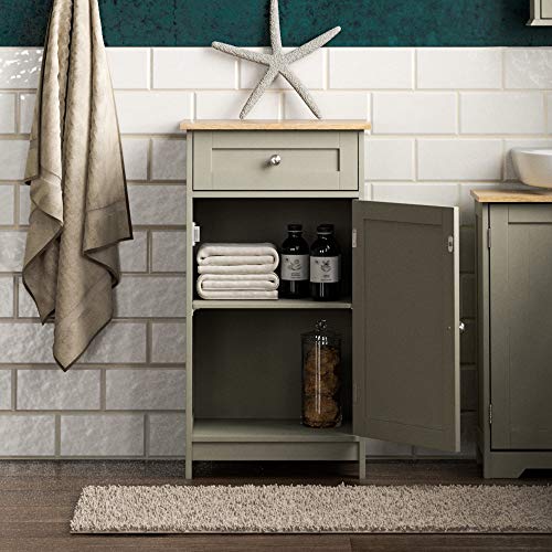 Home Bathroom Furniture Bath Vida Priano Bathroom Cupboard 1 Door 1 Drawer Floor Standing Cabinet Drawer Unit Storage, Grey