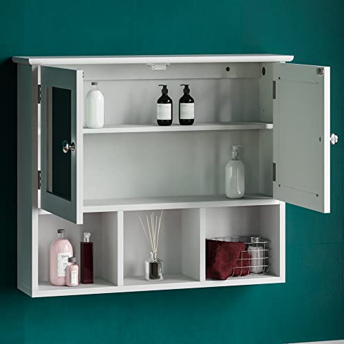 - Measuring approximately H 50 x W 60 x D 14 Cm, this wall mounted bathroom cabinet is the perfect size for medium-sized bathrooms. It saves space by being mounted on the wall, freeing up valuable floor space.
