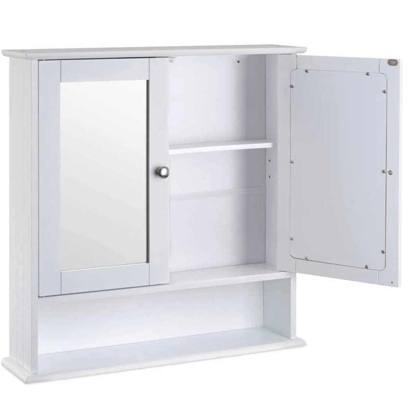 - 【Two HD Mirrored Cabinet Doors】The cabinet door is made of two high-quality mirrors which is perfect for mounting above a sink. Great for doing makeup and shaving and saving the space for placing another mirror in your bathroom.