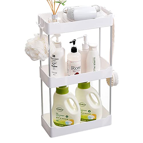 - 【Design】Bathroom rack is additionally equipped with 4 mobile hook designs, allowing you to hang different small objects to meet your different storage needs. The bottom anti-skid pad design, anti-skid and abrasion resistant, stand smoothly. Each layer is hollowed out design, permeable and breathable without water accumulation.