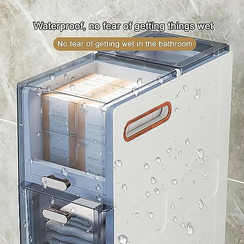 Home Bathroom Furniture Bathroom Floor Cabinet Vertical Storage Unit, Multifunctional Storage Cabinet with Drawers and Wheels, Plastic Freestanding Side Cabinet for Bath