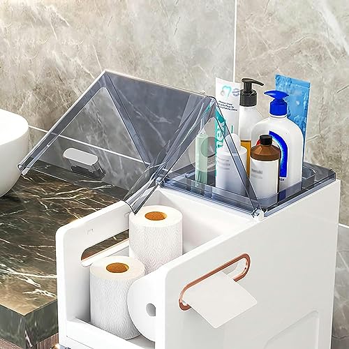 • ☀ Easy to move and clean: The Slim Toilet Paper Storage Cabinet with rollers, which are easy to pull out and push back for smooth movement across the floor surface. The sleek closed drawer storage makes it easy to clean with a simple wipe with a damp cloth.