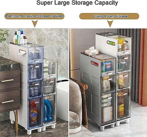 - ☀ Easy to move and clean: The Slim Toilet Paper Storage Cabinet with rollers, which are easy to pull out and push back for smooth movement across the floor surface. The sleek closed drawer storage makes it easy to clean with a simple wipe with a damp cloth.