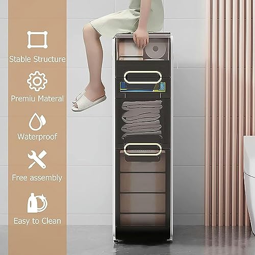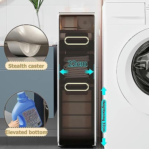 - 【Small Body Large Capacity】Narrow dresser tower is suitable for small spaces and gaps,easily slides into the narrow gap between the refrigerator and the wall or between the washing machine and the toilet.Skinny storage drawers with stylish clean lines in classic colors,can fit any home space,bathroom,bedroom,living room corner as needed