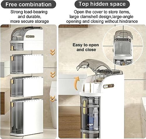 - 【Adequate storage space】Multi layered drawers and top flip-open cover design allow you to organize different items.Each drawer can be classified to store different bathroom items,such as towels and tall bottles of shampoo.The top features a large flip design for easy access to items,and there is a tissue opening on the side.The compact foot makes it an excellent storage cabinet