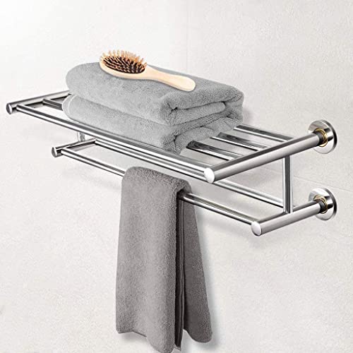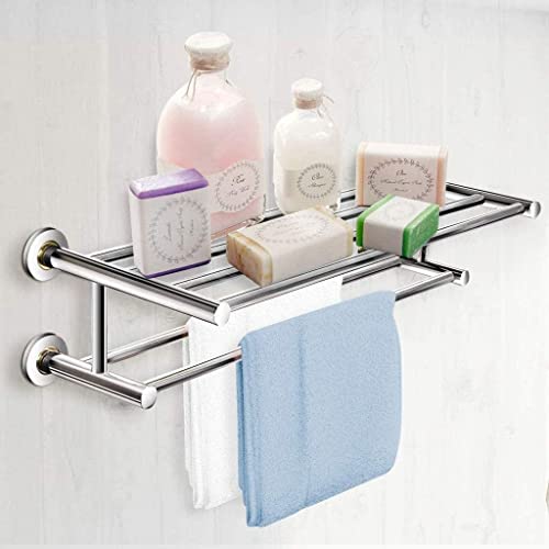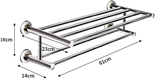 Home Furniture Bathroom Towel Rack, Stainless Steel Towel Holder Wall Mounted, Towel Rail with 2 Shelves, Towel Stands for Bathroom, Kitchen 60Cm