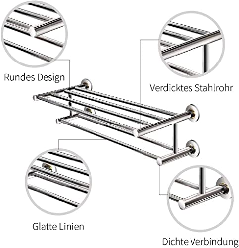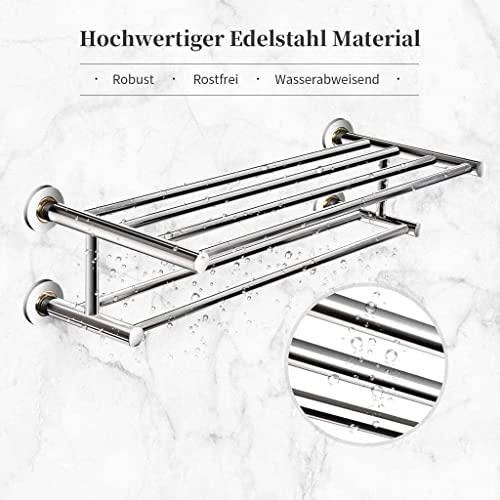Bathroom Towel Rack, Stainless Steel Towel Holder Wall Mounted, Towel Rail with 2 Shelves, Towel Stands for Bathroom, Kitchen 60Cm