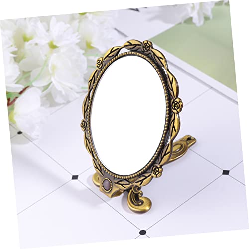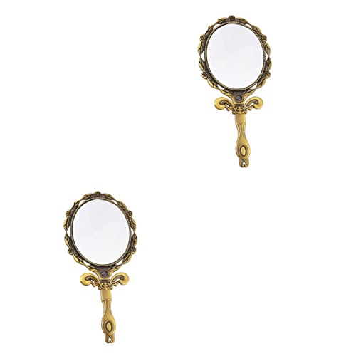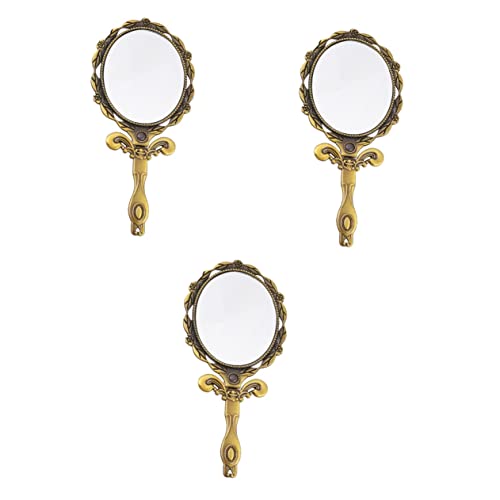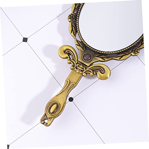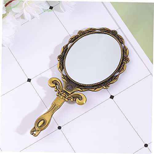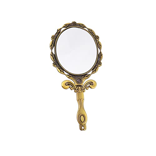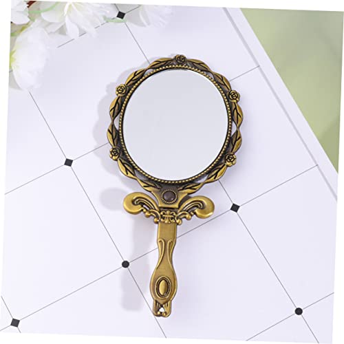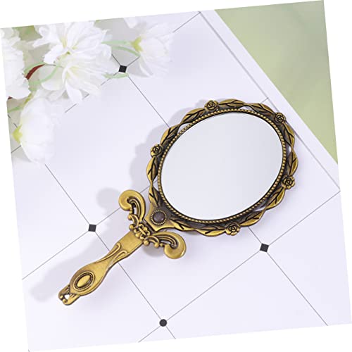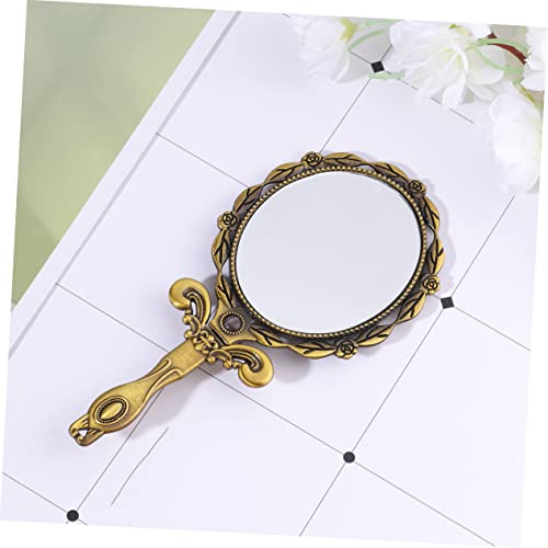 • ANTIQUE GOLD-- Retro hand held mirror with classical embossed flowers: Mirror your honorable temperament.