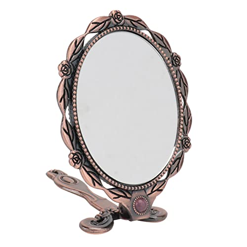 • ANTIQUE GOLD– Retro hand held mirror with classical embossed flowers: Mirror your honorable temperament.