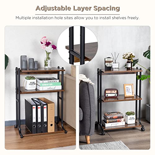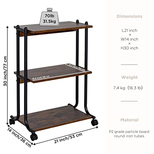 - Optimizes Space & Adjusts Tier Height - Measuring 21 × 14 × 30 in (53 × 36 × 77 cm), this printer stand features a 3-tier open shelf design for more reasonable construction and more storage space. 4 different heights are available for the upper 2 shelves, and you can keep your workplace clean and tidy by installing the shelves at right heights according to your needs to organize your printer, fax machine, printer cartridges or other office supplies.