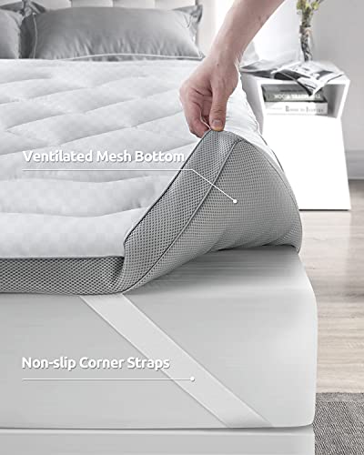 - 【Breathable & Cooling】The mesh bottom and sides features good ventilation and heat dissipation, helps to regulate the temperature. 3D fiber can also promote moisture absorption and drying to keep you cool. Without worring about sweaty night caused by memory foam pads or traditional mattresses, our cooling mattress topper provides an better solution for optimal sleep.