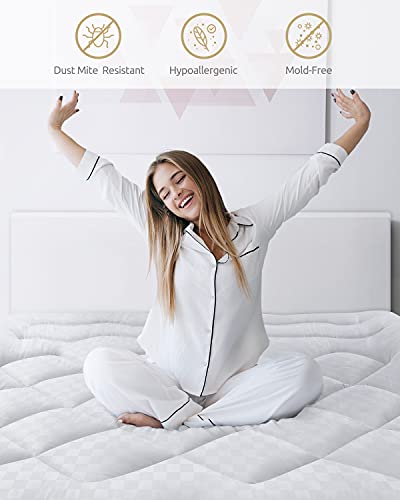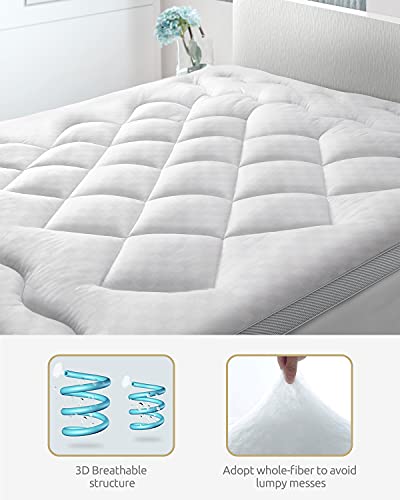 - 【Luxury Quilted Design】Constructed with luxurious quilted polygon and stream pattern, our double mattress topper is motion isolated and capable of preventing the filling from shifting. You can trun over freely on quiet nights without worring about noise or mattress movement. Besides the high-quality materials of bed topper are durable, there is no risk of deformation after clean or long time using.