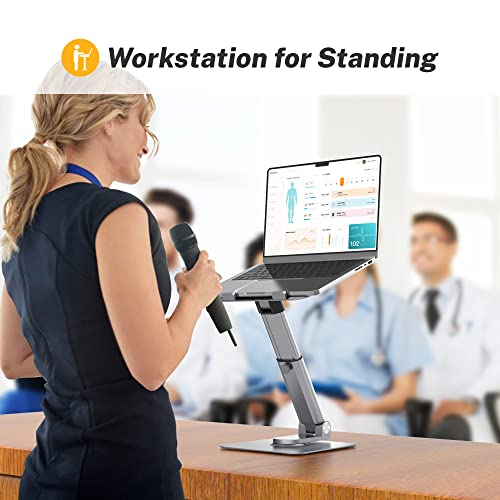 - Workstation for Sitting or Standing: The ergonomic laptop riser can adjust heights and angles to improve your office experience for sitting or standing, effectively relieves muscle tension and has better blood circulation. Laptop riser up to 18”.