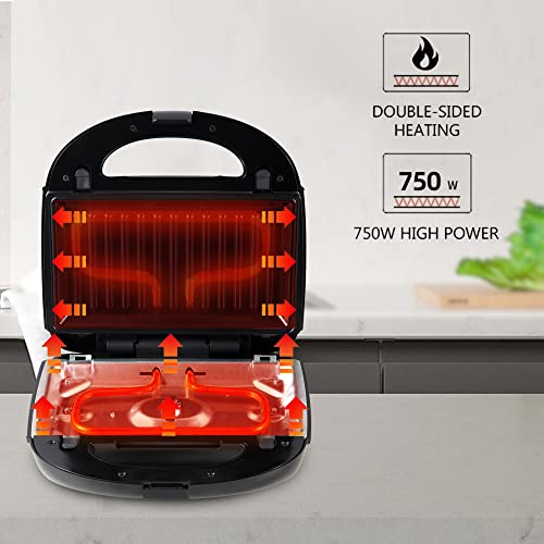 - 【TEMPERATURE CONTROLLED】The sandwich maker comes equipped with a two light system that will let you know when the machine is ready to be used. When the machine is at optimum temperature it will light up, this will allow you to get your food perfect every time whether you are making it for yourself family or friends