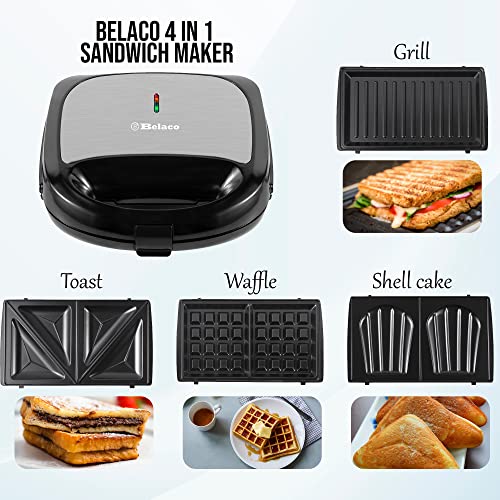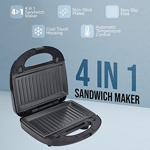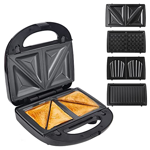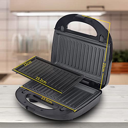- 【4 IN 1 SANDWICH MAKER】Your 4 in 1 sandwich maker comes equipped with 4 detachable plates (all plate size:23*13cm) for all your needs: sandwich/grill/waffle and shell cooking. This is not just very efficient but also saves you a lot of counter space as you can easily store this in your cupboards as well