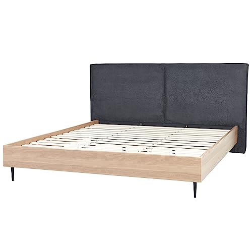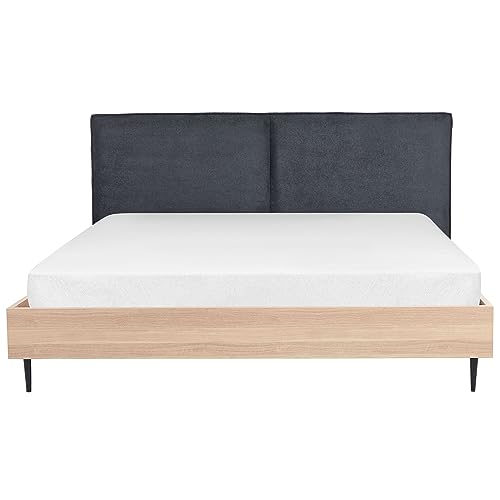 - Featuring upholstered headboard in dark grey shade for sophisticated look