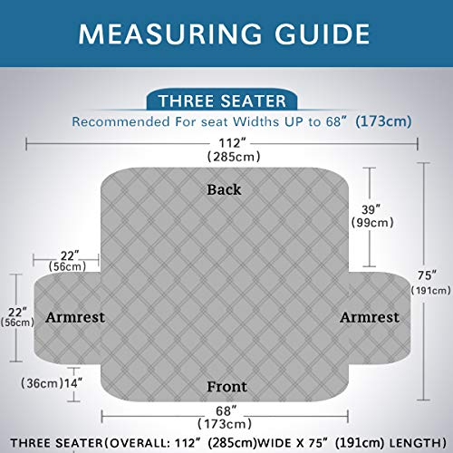 - GREAT FIT: We developed the product with guidance “one size fits most”, match well for your most different styles of sofa furniture. Dimensions: (1 seater: 165cm x 190cm, seat width up to 53cm); (2 seater: 249cm x 190cm, seat width up to 137cm); (3 seater: 284cm x 190cm, seat width up to 167cm); (Recliner: 173cm x 200cm, seat width up to 56cm). Vary with 5 reversible colors: Grey, Brown, Smoke Blue, Taupe, Black