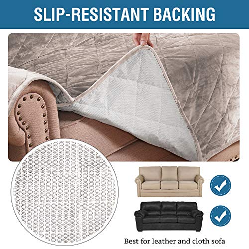 - STAY IN PLACE: Including TWO upgraded 5cm wide adjustable elastic straps and the non-slip PVC backing, no matter on leather or fabric furniture, our protector can always secure in place firmly without constant slipping and sliding. There is one strap to wrap around the back of your furniture and one for under the seat cushion