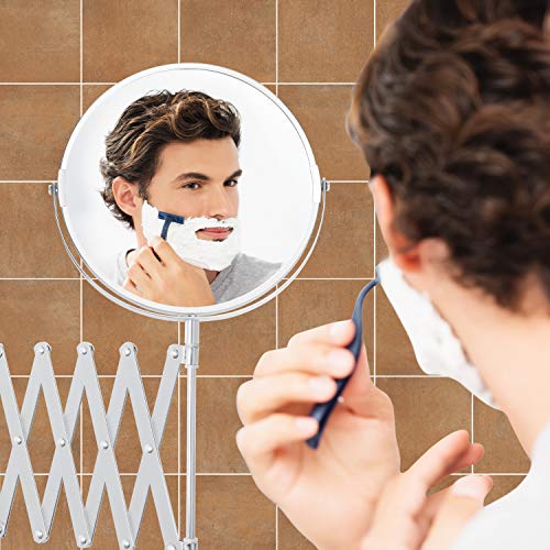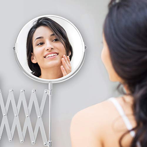 - 360° SWIVEL EXTENDABLE DESIGN: Each mirror tilts and rotates 360 degrees. The mirror can be moved towards and away from you so you can get a better view of your face. The jointed scissor arm also allows you to move the mirror left or right. All these features ensure you get the best view for your beauty needs. Once you have used your mirror, simply push it to the wall. It can be positioned flat against your wall to save storage space which makes this great for small rooms.