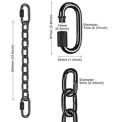 - PACKING LIST: Two 23.62"/ 1.96ft garden swing chain. Four heavy duty carabiners.