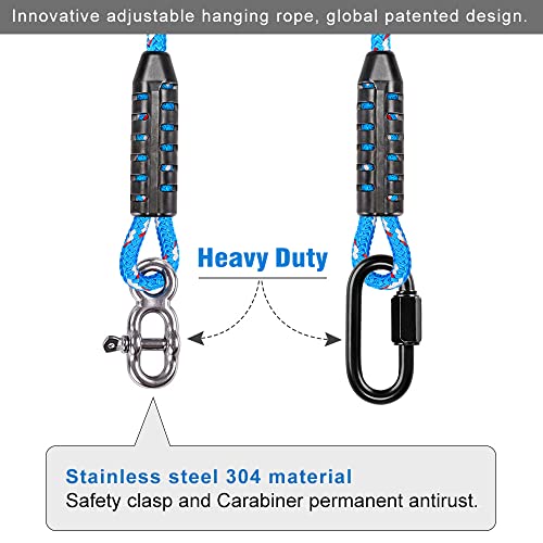 - EASY TO USE:Need't any other hardware, easily hang any swing to tree or play set. First: Hanging usage, just throw it over a tree or beam and attach the hooks to your swing or patio furniture; Second: Adjustable usage, open the safety clasp, pass the rope through the metal buckle, locked up then pull the rope ends tight.
