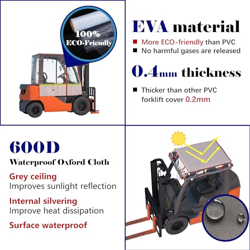- 【600D Silver Oxford Cloth Canopy 】– Waterproof and sunscreen, reflects UV rays, protects against rain and snow, and improves forklift driver working conditions.